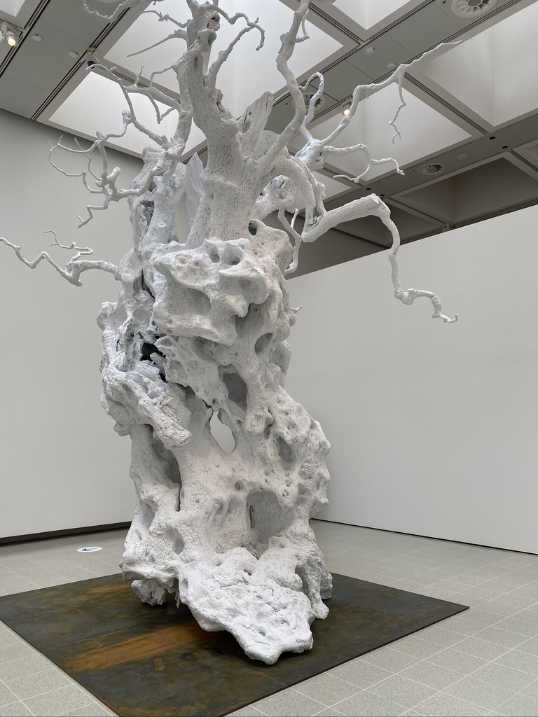 Ugo Rondinone’s Cold Moon 2011 is also a portrait of a specific Italian olive tree cast in aluminium and painted white. It has a ghostly presence, the original tree being over 1000 years old and hugely weathered by the elements, an assemblage of time and the forces of nature.
