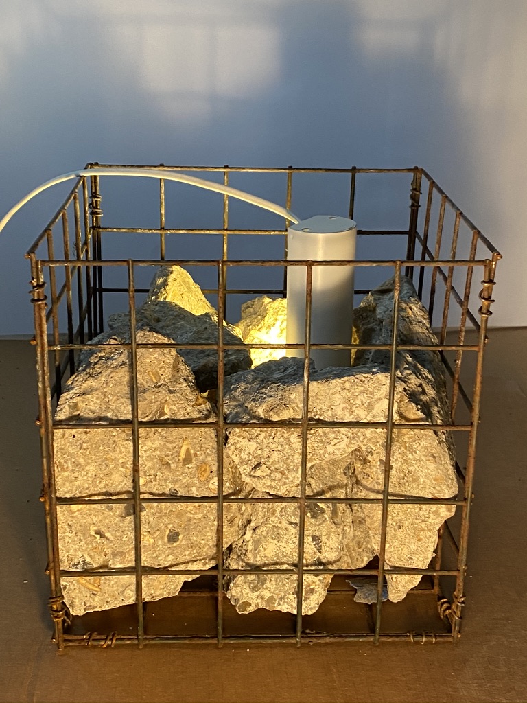 The new work in the Gabion baskets looks like stained glass windows. The experiments with lighting works really well.