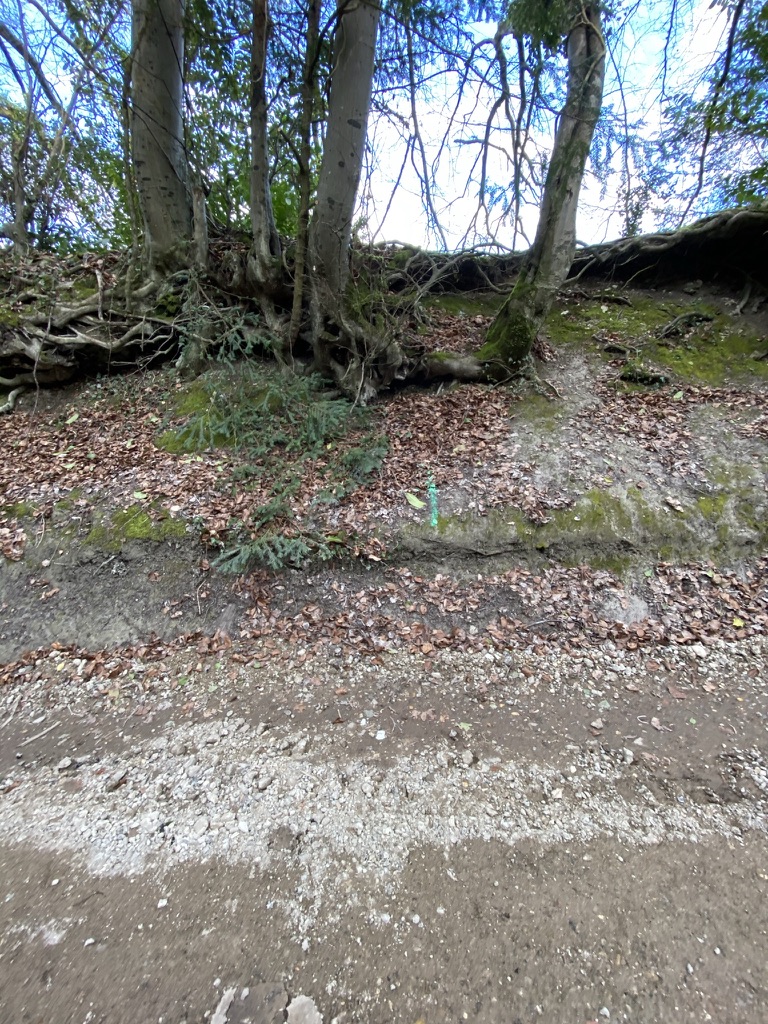 The company is not happy about laying plastic pipe but are not sure what else will work. That is one of many ironies apparent in this project which is, in part, about ensuring that all who are entitled use the Byway Open to All Traffic (B.O.A.T.) can do so. It is imposing changes on the landscape by using hefty fossil fuelled vehicles in an attempt to protect that landscape from the ravages of erosion caused to a great extent by similar vehicles. The human generated deposits making up the new ground will find themselves in the Quaternary geological layer, the layer above the bedrock, along with alluvial deposits, landslip and landfill. Although it is hoped that the upgrade to the surface will make the track boring and therefore unattractive to off-road vehicle users, the process of erosion will begin again and fragments of plastic, along the chemicals from the crushed concrete and tar will be washed down the hill, into the lane and then the stream beyond which feeds the River Rother, entering the sea at Littlehampton.