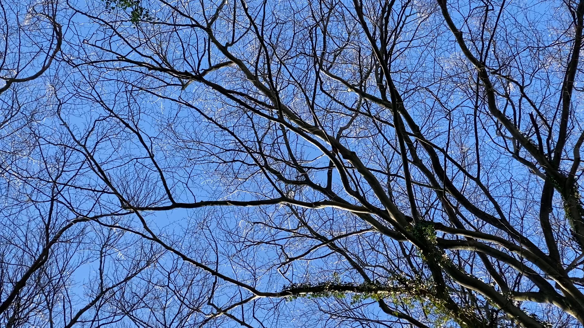 My method is to make weekly recordings in the same spot with my phone camera on a small tripod facing straight upwards into the trees. The camera isn’t placed strictly in the same position each time but certain branches and trunks are recognisable throughout. I take 3 shots each time – a wide-shot, a mid-shot and a close-up.