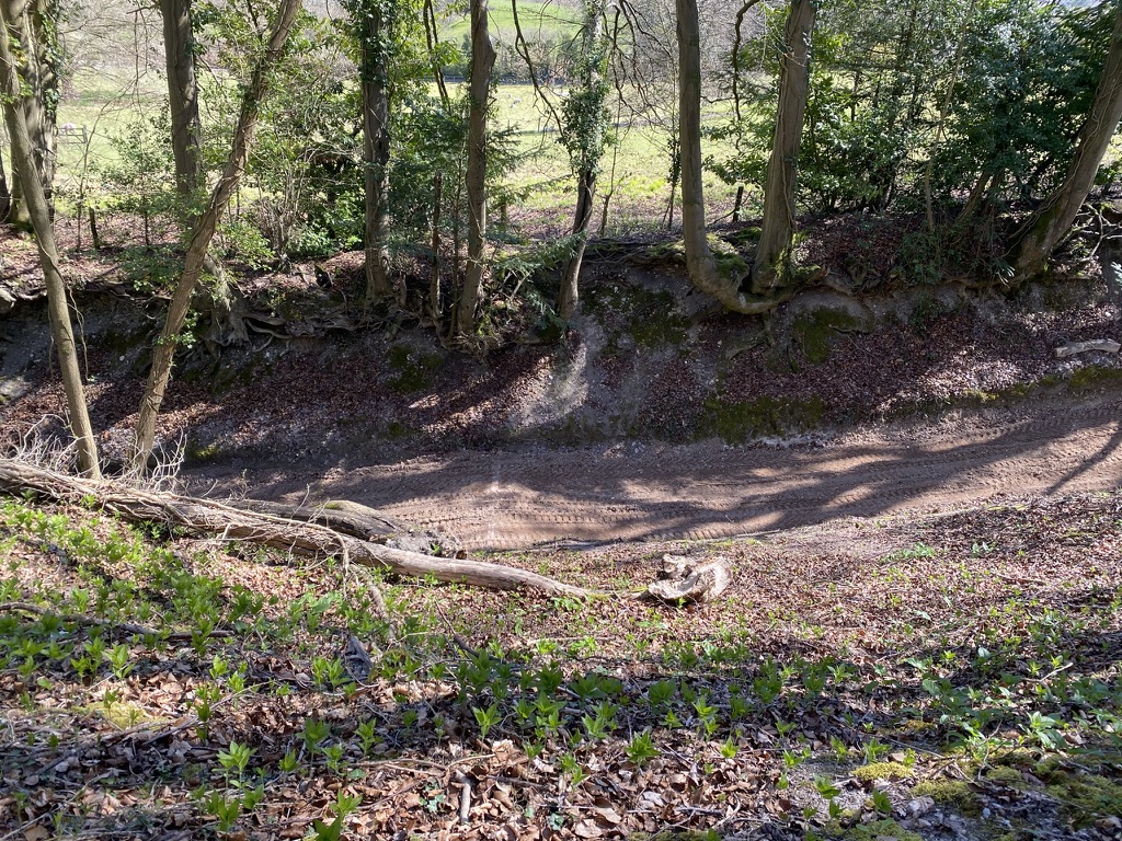 The task of logging all the footage is complete and now I am developing the script for my video which, in turn, will form part of a larger multi-disciplinary work about the location. Looking through all the still photographs that accompany the video has been a crucial step in this process, allowing me to see what the central concerns of the work really are. What has emerged is a need to concentrate on the changes imposed on the part of the track I call Byway 745 Observatory. This is the area that has undergone the most change with the installation of a drainage pipe, concrete bulkheads and a back filling of hardcore and limestone. The bedrock of chalk that was previously exposed in deep ruts eroded by rain water flowing down the hill and exacerbated by 4 x 4 recreational vehicles has been buried under this new surface.
