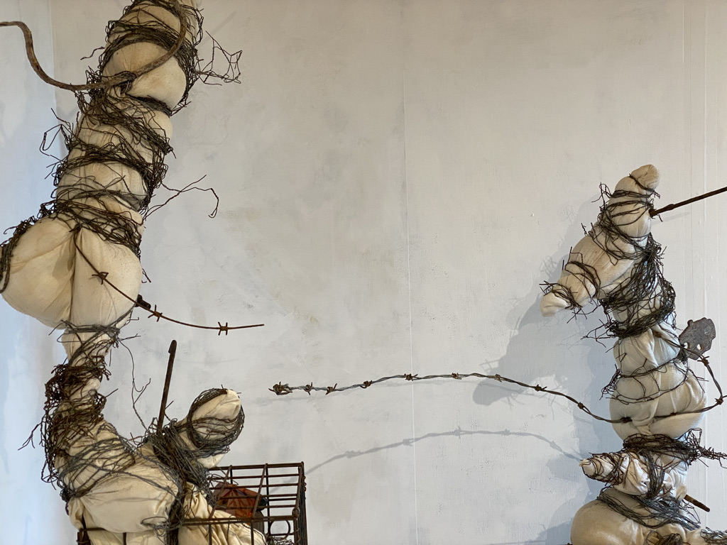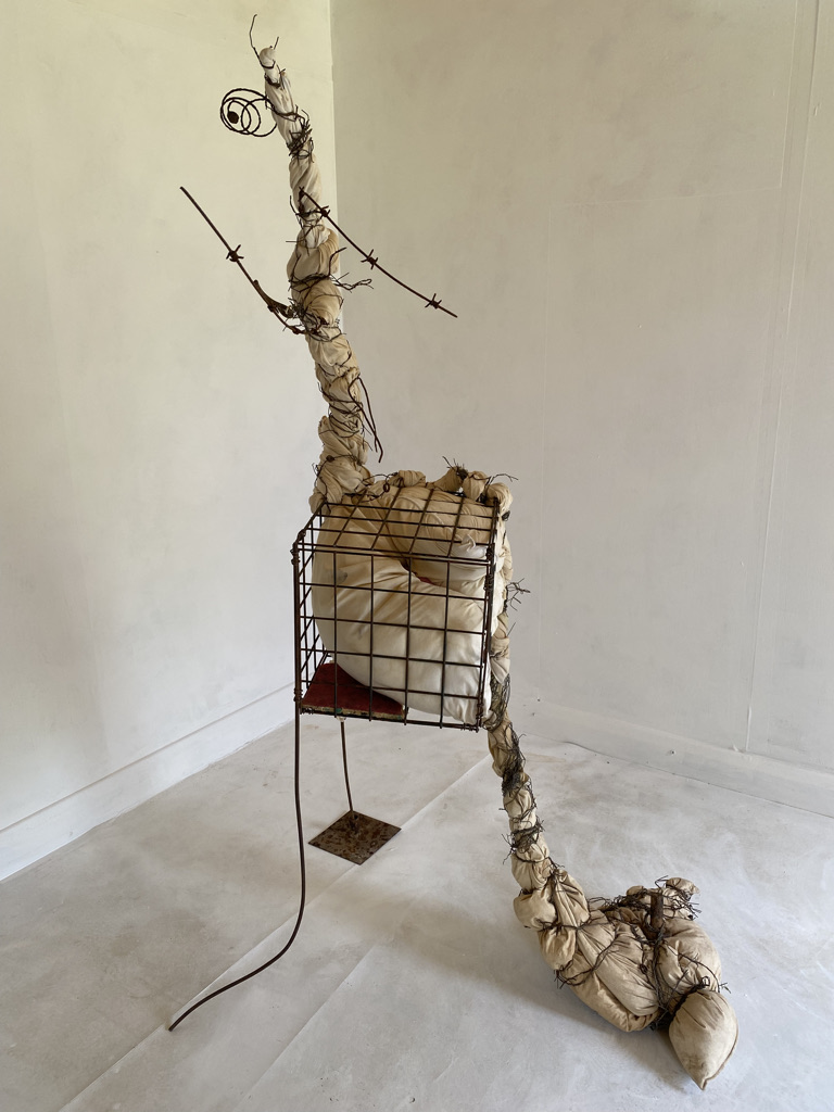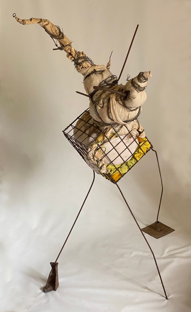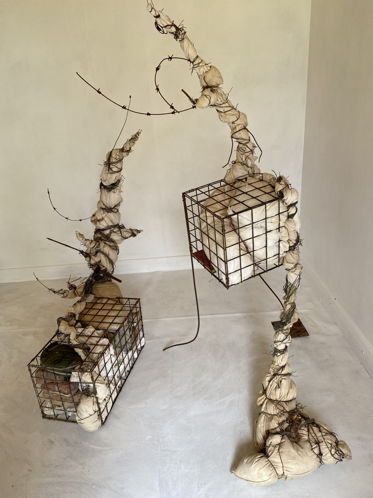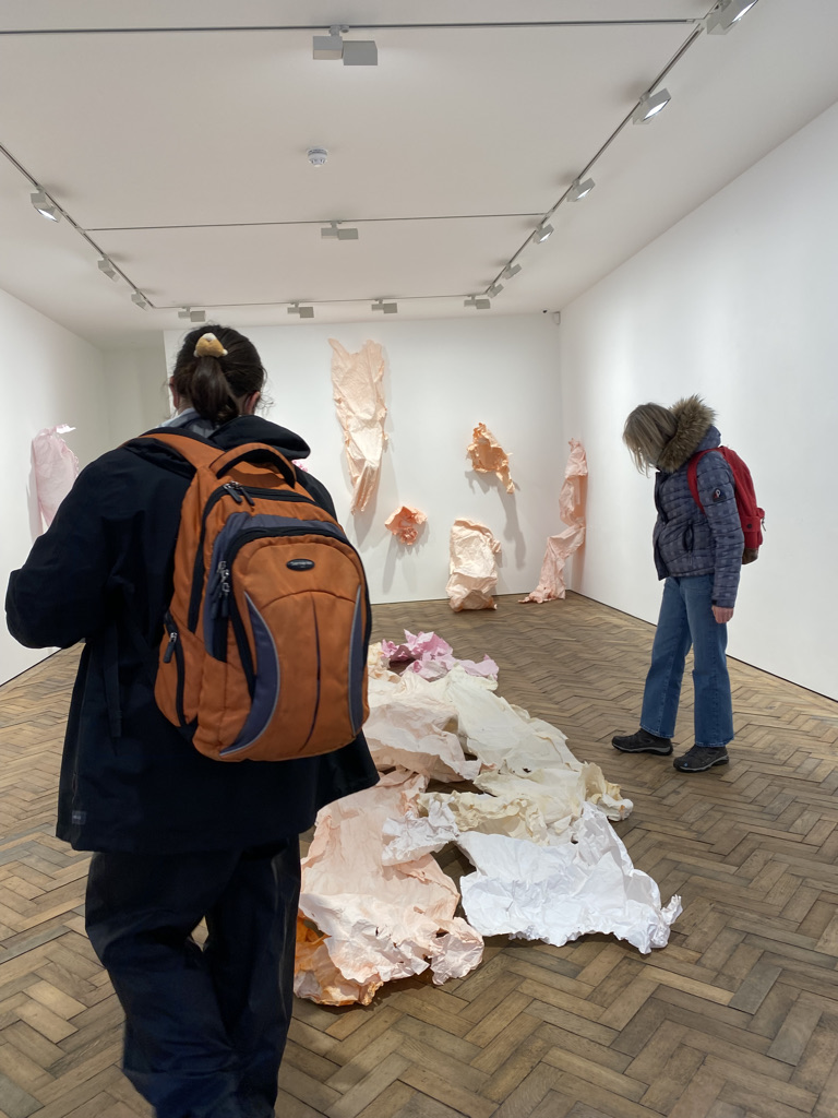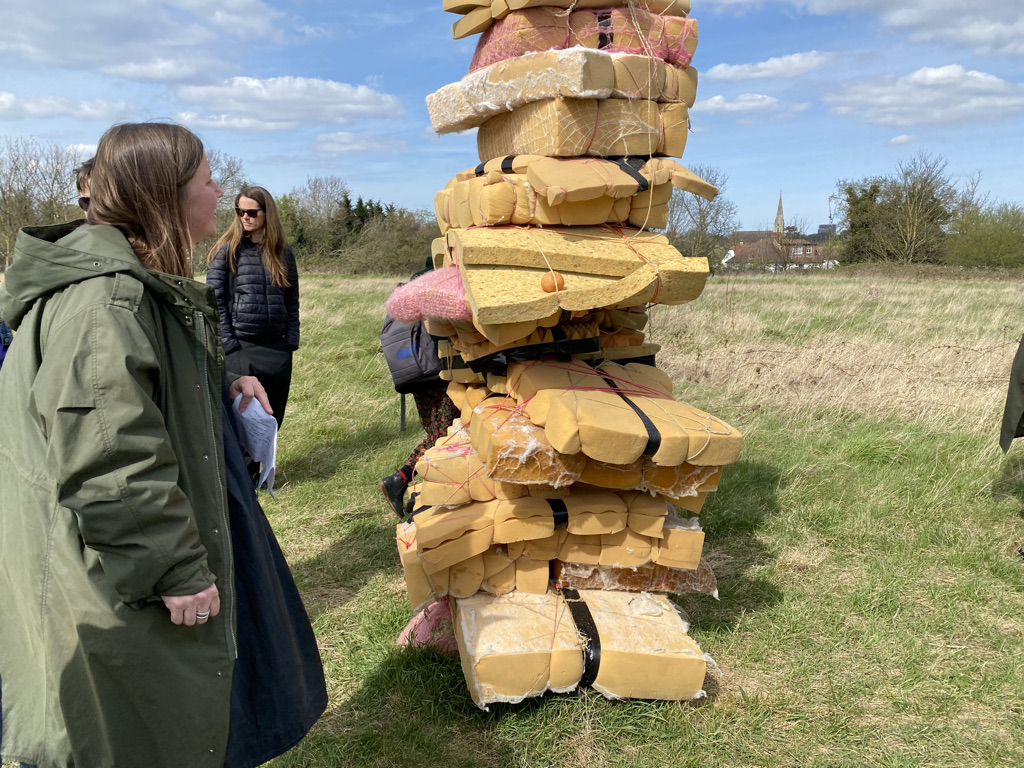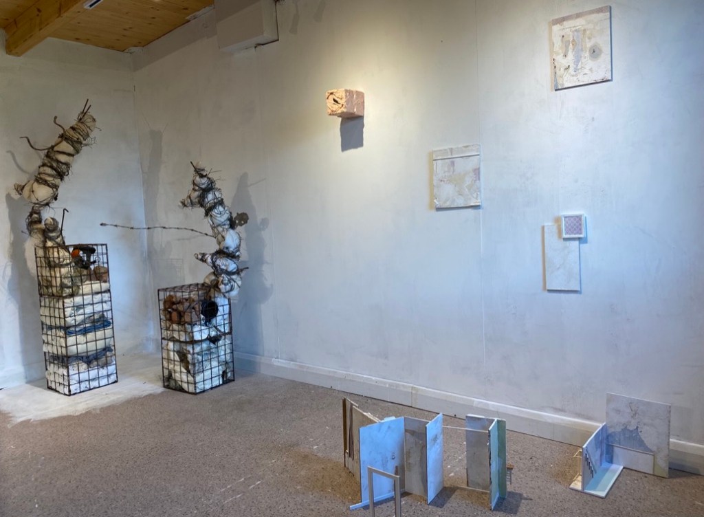 In the resulting sculpture, the original ‘bouquet’ assemblages are lashed to the front, back and sides of the A frame below the collage. The viewer is encouraged to walk round the piece and view from all sides. The piece has been shown in the group exhibition “Traces” on the theme of remembrance at Chapel Arts Studios in Andover. I gave it the title RIP Fraxinus Ex in reference to both the human act of memorialisation and to the Latin name of the ash tree. The exhibition venue was the place where the original ‘bouquet’ assemblages had been made last year bringing the project full circle in some senses, though also presenting a need to unpack and simplify.