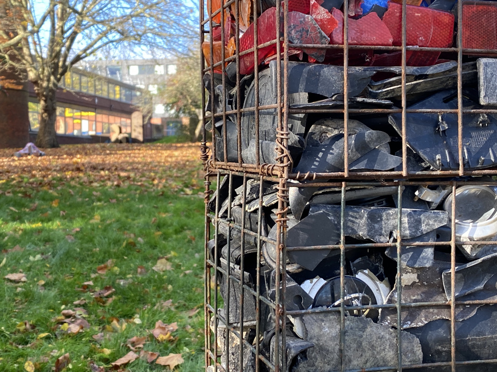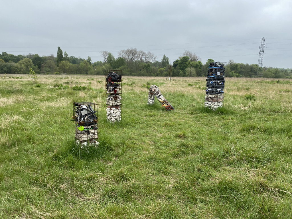 Over the past year I have been working on a series of small assemblages made from plastic waste collected during my daily walk in the Hampshire countryside. These ‘bouquets’ and ‘floral tributes’ were started during my residency at Chapel Arts Studios, discussed in my previous post. The experience of the daily drive on busy A roads, coupled with arriving at the Chapel via the surrounding Andover Cemetery drew attention to glimpsed roadside tributes. These grassroots memorials are ubiquitous and anonymous for the passing motorist. Often there is nothing left of the bouquet of flowers but the plastic wrapper and cable tie. Just a shred of plastic that endures as a reminder of strangers’ grief.