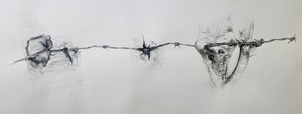 What I was drawn to on my walk were the dead and fallen trees lining the route, most being ash. Since 2012 ash dieback disease has ravaged the UK’s ash trees, Fraxinus Excelsior, and a decade on climate change induced storms have been felling these trees in great numbers.