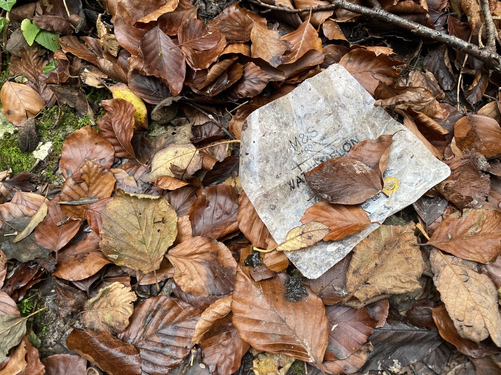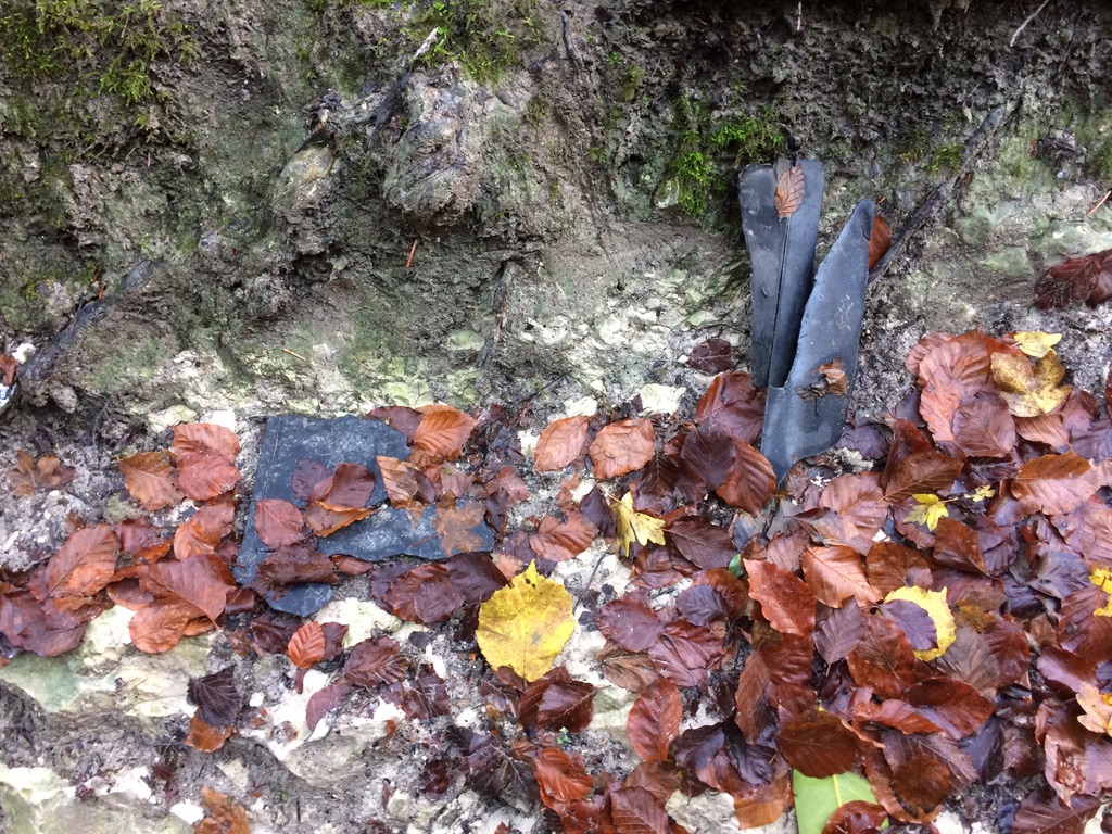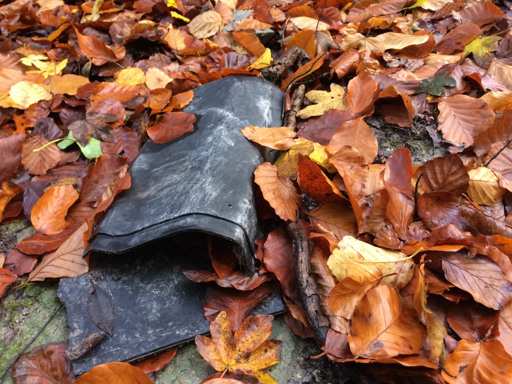 After much deliberation, I have decided to stick to monochrome, using graphite and wash, as I did for the trees, so that the litter is not immediately obvious. As I weave the objects into the large drawing I may be tempted to use splashes of colour here and there but I’d like to treat them as part of the same ecosystem as the beeches. The man made objects that are found under the line of trees have been dropped as people pass up and down the track. They mark a passage of time but they also become stuck in a moment of time. In the city these flows of litter are part of a system, but in the countryside they are outside any system of collection and disposal. As Rosemary Shirley points out in Rural Modernity, Everyday Life and Visual Culture litter in the countryside ‘sits, it decays, and interestingly it sometimes becomes colonised by its new environment’ (Shirley 2016: 60). These photographs show just that happening as layers of leaves and mud cover the objects and moss begins to grow on them.