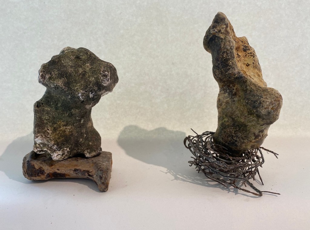I have begun experimenting with stands made from some of the man-made detritus I collect from the same location as the flints. The two examples shown here use steel. Brick, plastic, concrete and wood are other possibilities I’m working with.