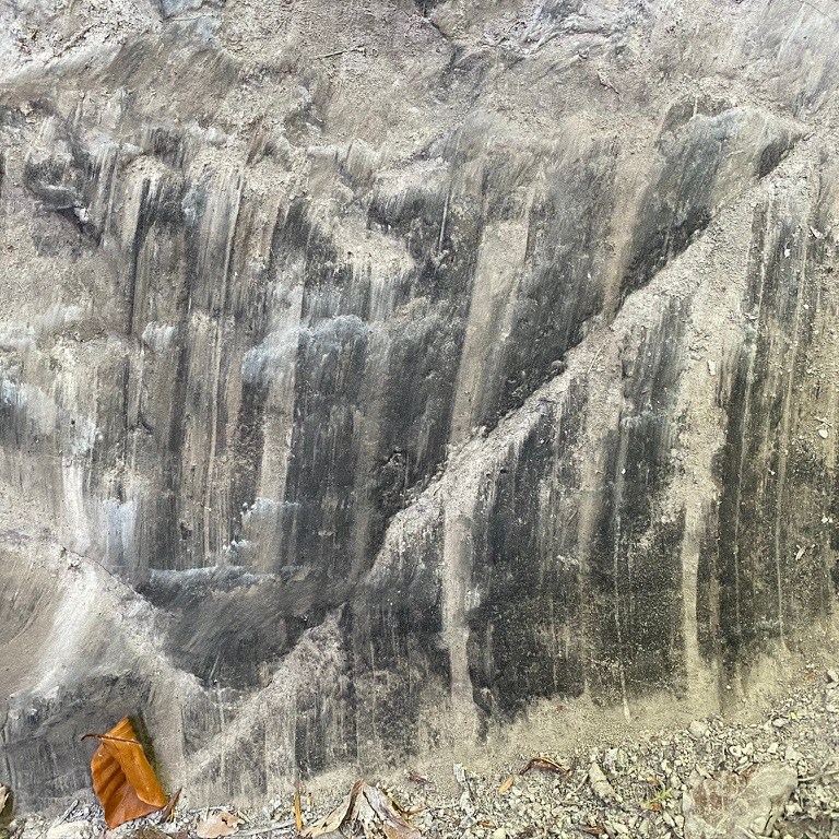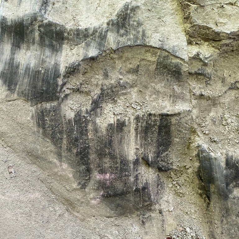Taking two different photographs, one colour and the other black and white, the final piece made use of tonal qualities to play with the formal elements of the original drawing for sculpture. By cutting it out and mounting it 3 cm off the wall the aim is to hint at a 3D outcome through its physical nature. This can be further emphasised by top lighting to achieve a cast shadow. The images also connect to each other through their depiction of surface and reference to the geology of the chalk hill. This work establishes a possible way of connecting the multiple layers that are making up my ongoing visual research in the landscape.