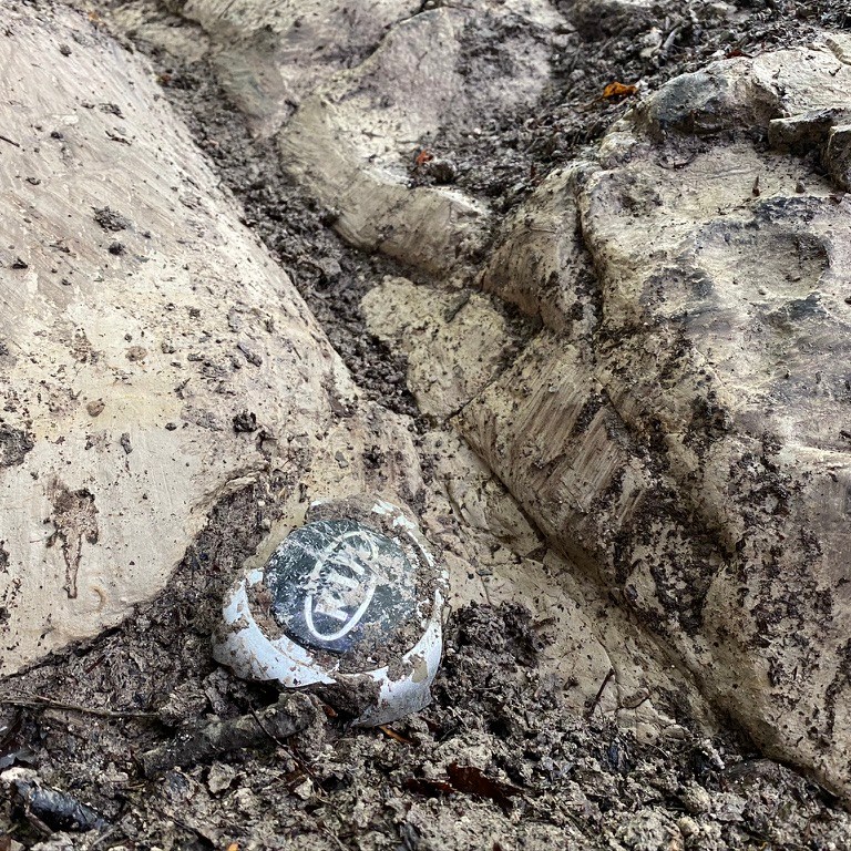 Whilst drawing, natural sounds have felt amplified. Buzzards, woodpeckers, and the nearby grazing sheep. Butterflies and spiders have passed by on their way but, so far, no humans. The human traffic is only evident in what has been left behind. The images below show the 4 x 4 tyre scrubs on the chalk and a smashed logo badge. A reminder of the accelerated erosion of the chalk by recreational vehicle use in recent years.