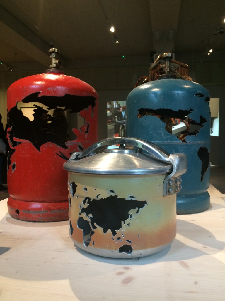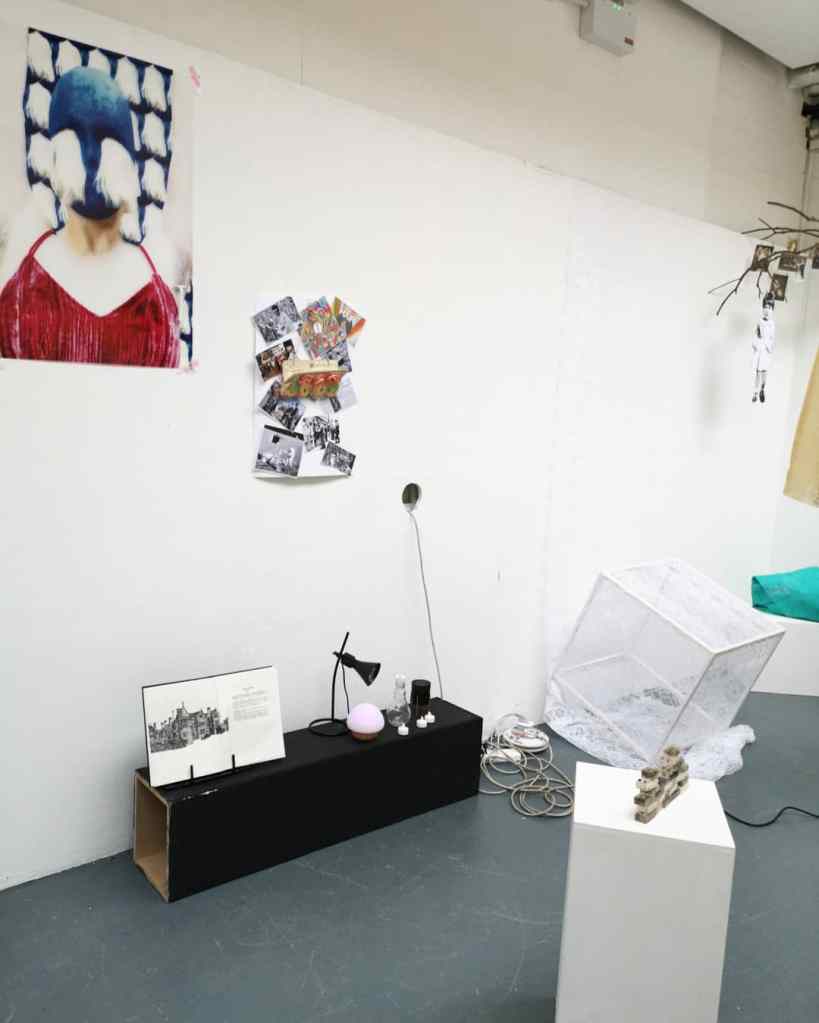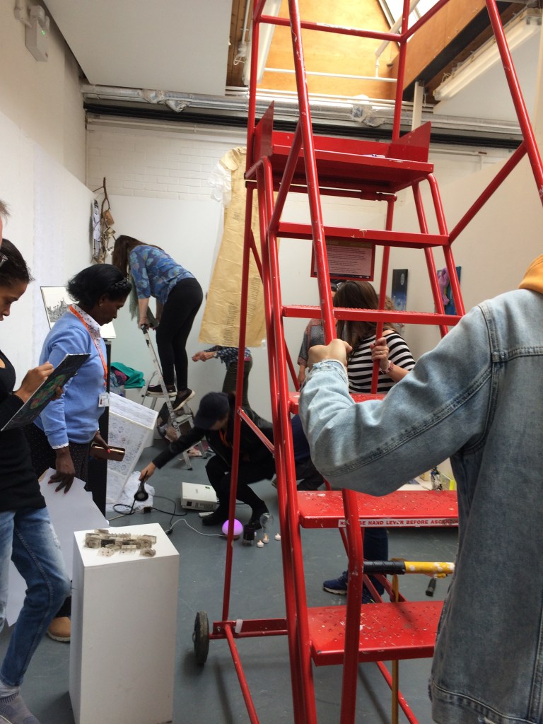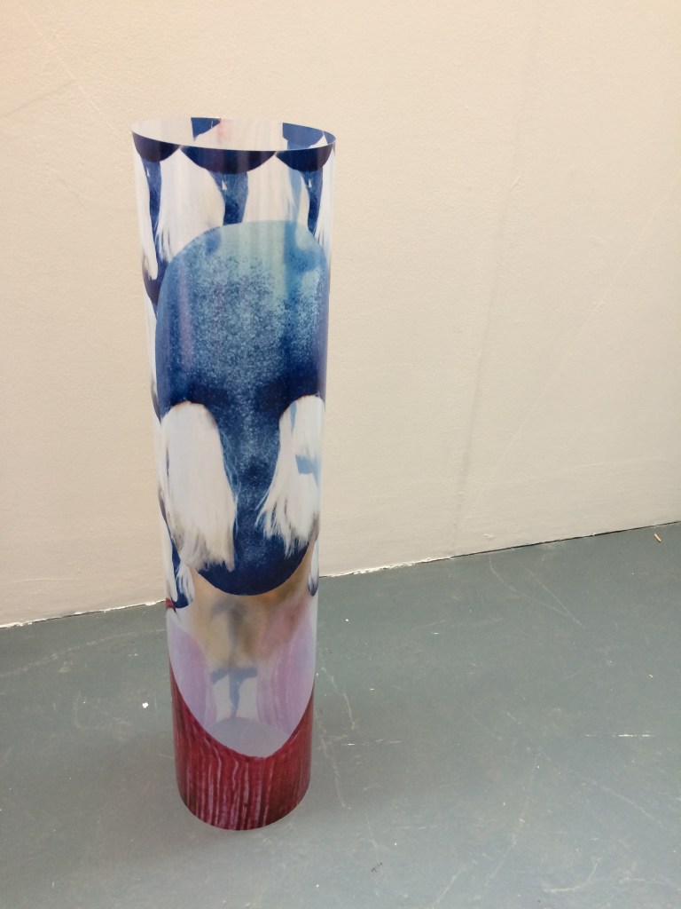 We started by looking at four works by UCA PhD student Martha Todd at The Freud Museum in North London – part of a show to celebrate the centenary of Freud’s publication “The Uncanny” which runs until 9th February 2020. Martha works in clay and porcelain with found objects to create hybrid “well-loved” dolls. With mirrored eyes, they reflect uncannily back at the viewer. Missing parts have been replaced. Casts of the artist’s fingers and repurposed forks become legs. “Love Funnel Deluxe” is an assemblage of glazed slip-cast earthenware and antique vacuum hose, with humorous as well as creepy and overtly sexual connotations.