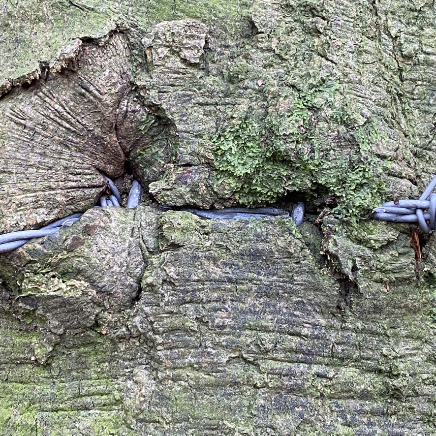 Over recent months I’ve been working with my own photographs and drawings of barbed wire fencing stapled to trees to develop a body of work that begins to express links between the abuse of nature and our bodies. Observing the resilience of these trees that grow around the brutally stapled wire, and seeing forms reminiscentContinue reading “Observations of Brutality and Resilience.”